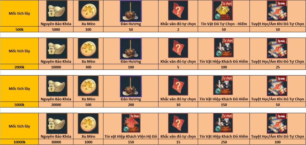 Chư vị Đại Hiệp có thể chọn đổi quà sang lựa chọn khác – Áp dụng cho mốc nạp 5000k trở lên và chư vị Đại Hiệp cần báo danh tại https://tieungao.gamota.com/landing/bao-danh-doi-qua