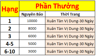 - Hạng tính theo điểm, phạm vi tính theo all server đang có tới lúc kết thúc sự kiện.