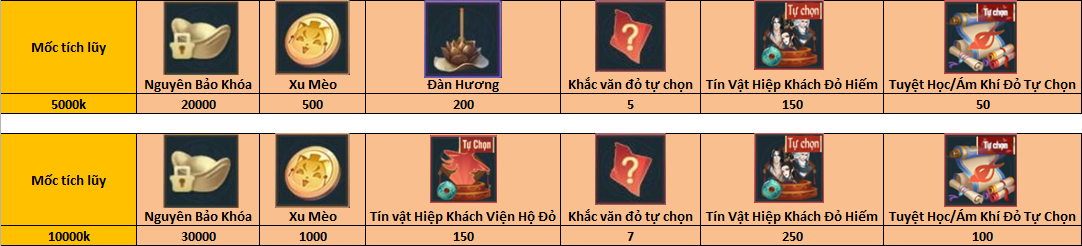Chư vị Đại Hiệp có thể chọn đổi quà sang lựa chọn khác – Áp dụng cho mốc nạp 5000k trở lên và chư vị Đại Hiệp cần báo danh tại https://tieungao.gamota.com/landing/bao-danh-doi-qua