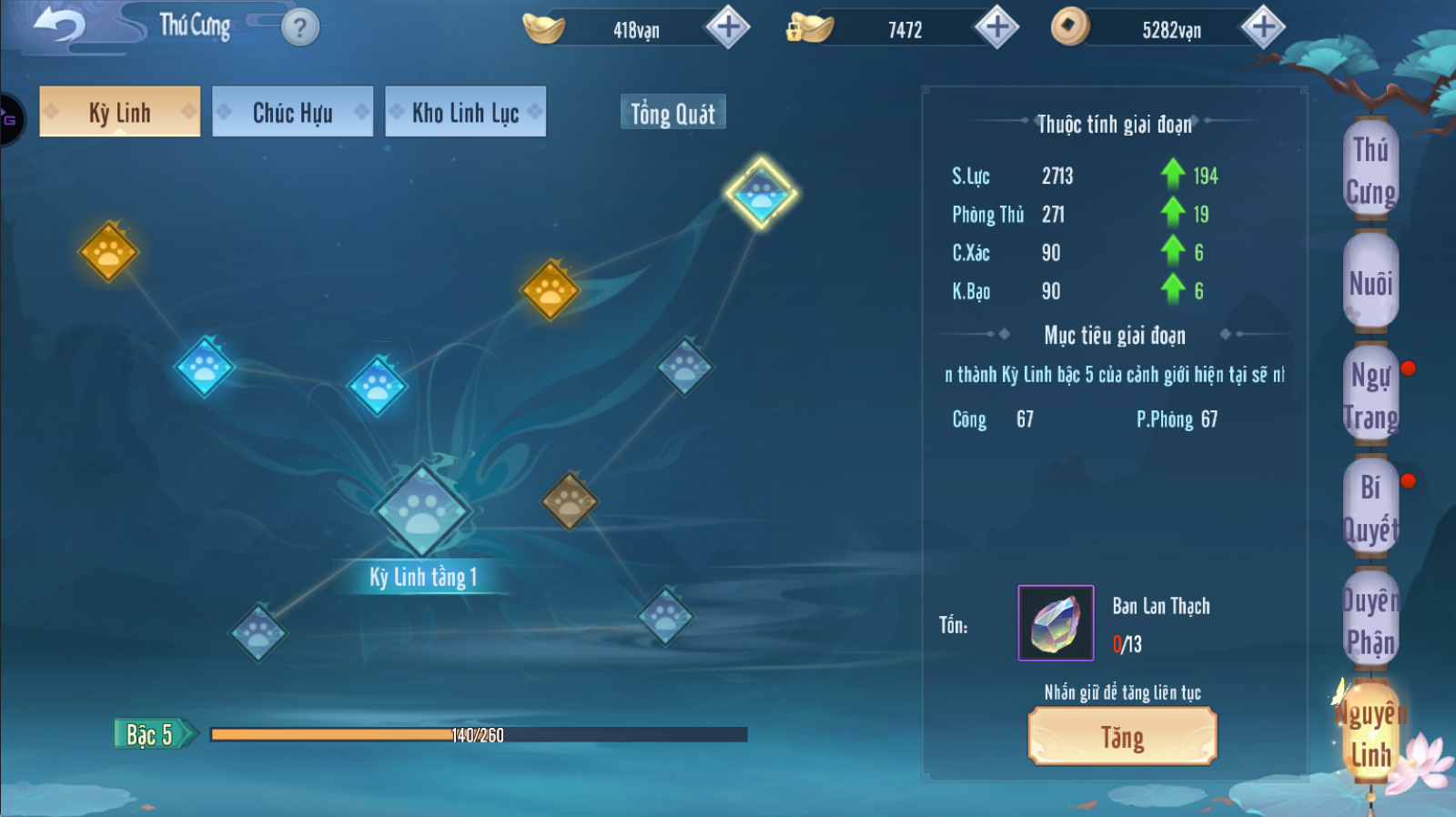 Hệ thống bồi dưỡng Nguyên Linh chia làm 3 phần: Kỳ Linh, Chúc Hựu, Kho Linh Lục