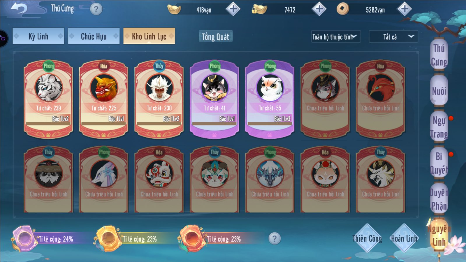 + Tỷ lệ chuyển hóa thuộc tính của thẻ chỉ định trong Kho Linh Lục
